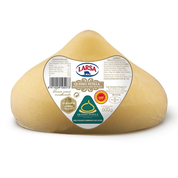 Otro de los quesos que ha obtenido un oro ha sido el Tetilla de LARSA. Se trata de un queso elaborado con leche de vaca, lo que hace que sea único caracterizado por su regusto, textura y sabor suave. Este queso es perfecto para consumir a cualquier hora del día.