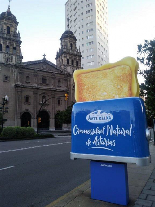 Central Lechera Asturiana vuelve a sorprender con tostadoras 3D en los mupis de JCDecaux en Oviedo y Gijón