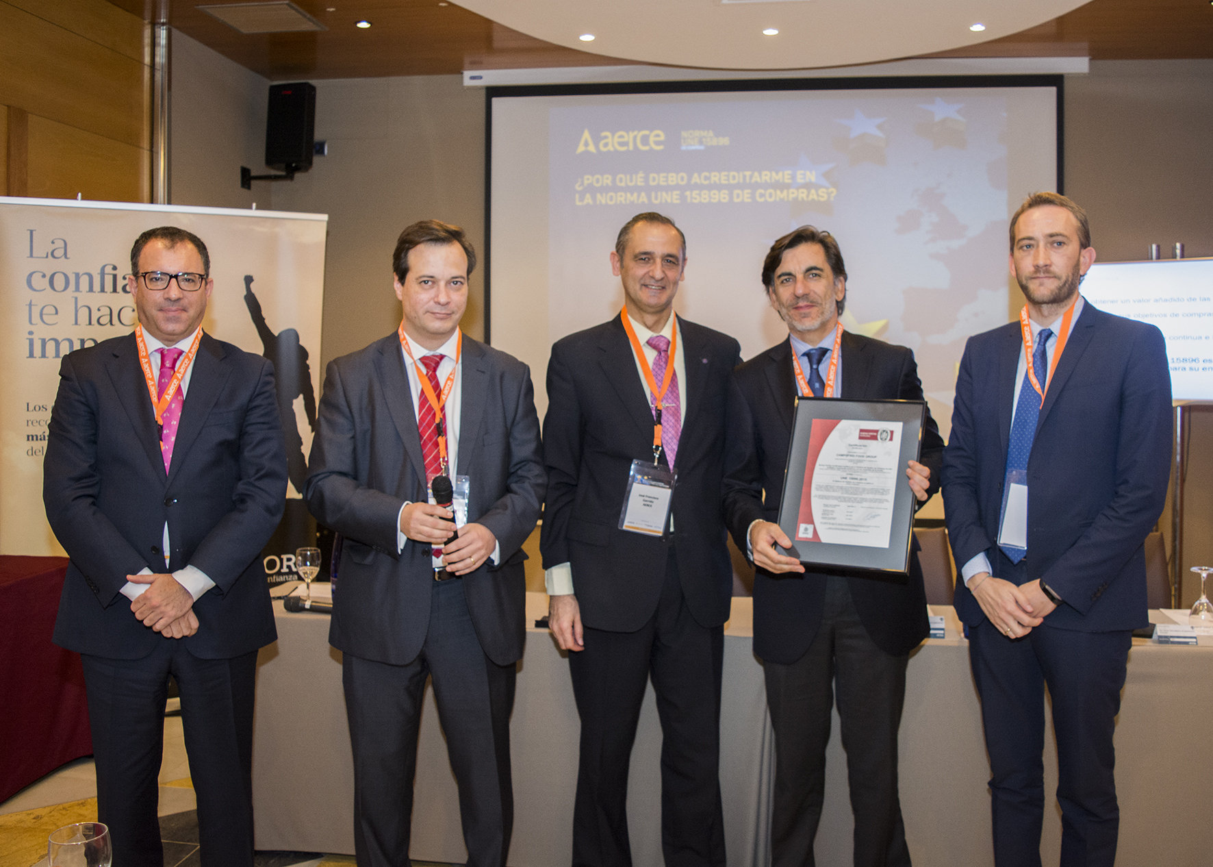 2 de diciembre de 2016En un acto celebrado en Madrid, la Asociación Española de Responsables de Compras, Contratación y Aprovisionamientos (AERCE), ha hecho entrega a Fernando Sanfiz, director de Compras de Campofrío Food Group, de la certificación otorgada por Bureau Veritas de la Norma UNE 15896 de Gestión de Compras...