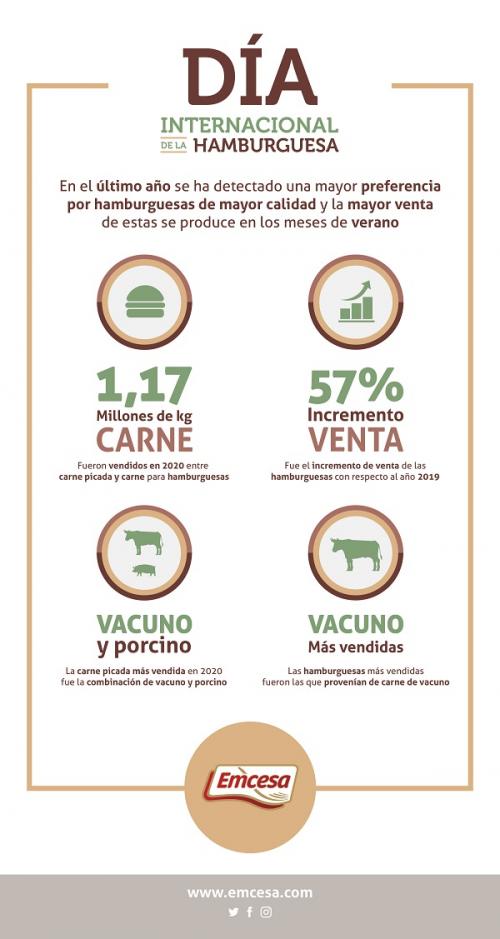24 de mayo de 2021La ola de las hamburguesas Gourmet va más allá de las cadenas de restauración y se percibe también en los hogares. Así lo confirman los datos de Emcesa que, con motivo del Día Internacional de la Hamburguesa que se celebra el 28 de mayo, ha incrementado de forma importante la venta de este producto ...