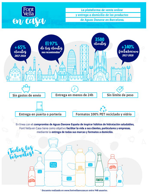 21 de junio de 2019Aguas Danone cierra en positivo el segundo año de su servicio de entrega a domicilio, Font Vella En Casa. La plataforma, disponible en Barcelona, ha aumentado en un 65% sus clientes y ha obtenido un 140% más de facturación este último año. Actualmente, cuenta con más de 3.500 clientes entre los que ...
