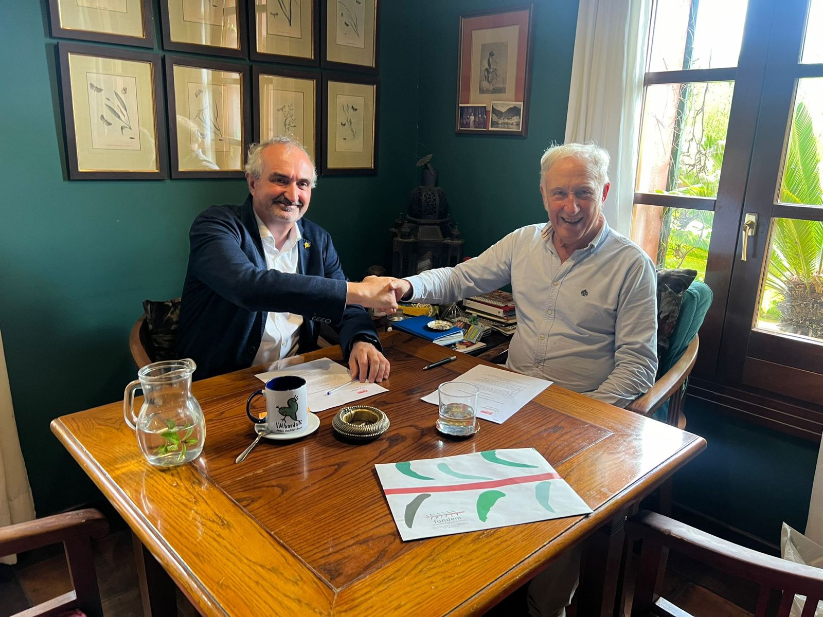 Enrique Montoliu y Bernardo Gregori han rubricado el acuerdo de colaboración en el idílico Jardín de L’Albarda en Pedreguer, jardín que pertenece a la fundación, considerado como uno de los más bellos del mundo y que puede visitarse todos los días del año.