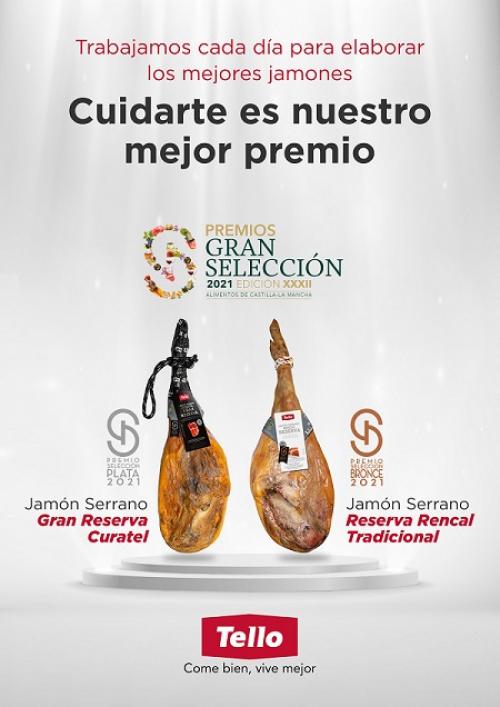 5 de julio de 2021La compañía cárnica Grupo Tello Alimentación ha obtenido una plata y un bronce con dos de sus jamones serranos con Especialidad Tradicional Garantizada (ETG), durante la 32º edición de los Premios Gran Selección, entregados la semana pasada en Puertollano (Ciudad Real). Organizados por la Junta de...