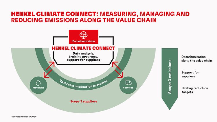 A través de la iniciativa "Together for Sustainability (TfS)", que Henkel cofundó en 2011 junto con otros socios de la industria química, la empresa lleva trabajando estrechamente con otros miembros en la recopilación de datos de la Huella de Carbono de Producto de proveedores estratégicos. Con el nuevo programa "Climate Connect", este enfoque se ampliará ahora a una base de proveedores aún mayor con distintos niveles de madurez.