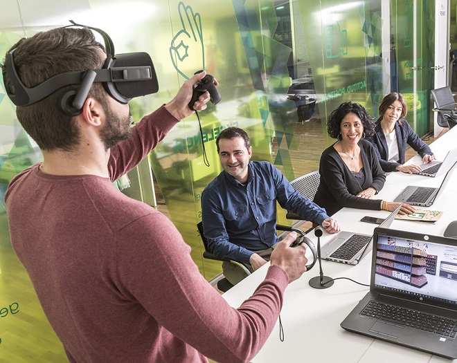 Esta movilidad permite a Hinojosa acercar esta herramienta allá donde sea de utilidad para sus clientes: en España o Portugal, o incluso en las instalaciones internacionales de éstos. Se compone de un software específico para generar 3D en un entorno de supermercado y unas gafas Oculus para poder actuar con el packaging del producto en realidad virtual.