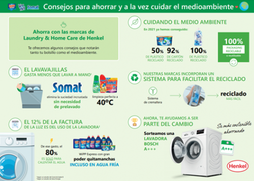 Con el objetivo de que el compromiso se mantenga a lo largo de todo el ciclo de vida del producto -desde su elaboración hasta su uso final-, las marcas de Henkel como Wipp Express, Micolor, Somat, Bref, Vernel y Dixan animan a los consumidores a optar por un estilo de vida responsable con el medio ambiente, poniéndose a su lado para ayudarles en este camino. Así, los consumidores pueden contribuir al medioambiente realizando un uso responsable de los productos, y también utilizándolos de forma más eficiente. Es por ello que las marcas Wipp Express, Micolor, Somat, Bref, Vernel y Dixan sortearán 50 lavadoras A+++ entre el 25 enero y el 18 de Abril del 2021 para ayudar a sus consumidores a mejorar el consumo de agua y eléctrico en el proceso de lavado de la ropa.