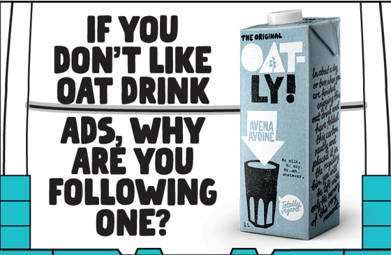 Además, esta campaña trae consigo otro gran hito para la marca, por primera vez uno de los anuncios tendrá una adaptación al español. Así, podremos ver en algunos laterales de autobuses el copy: “No me puedo creer que sea el único anuncio de bebida de avena que sepa español”.