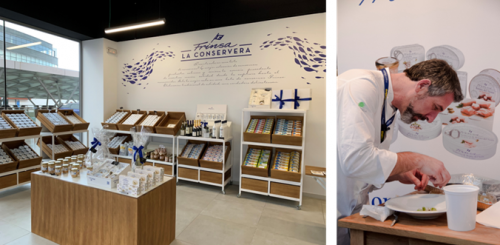 Pepe Solla muestra al público en la nueva pop up de Frinsa cómo maridar conservas premium con alta cocina