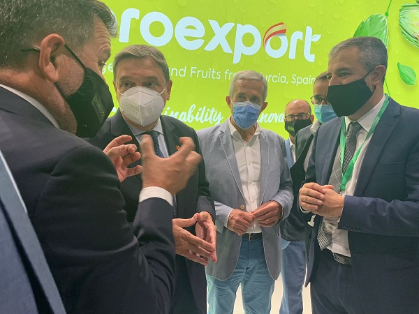 Marín reclamó a las autoridades que pasaron por el stand de Proexport (el ministro de Agricultura, Luis Planas, el consejero de Agricultura de la Región de Murcia, Antonio Luengo, y el presidente de VOX, Santiago Abascal) el máximo respaldo para la agricultura murciana porque “no se concibe la Región de Murcia sin el sector primario y exportador”.