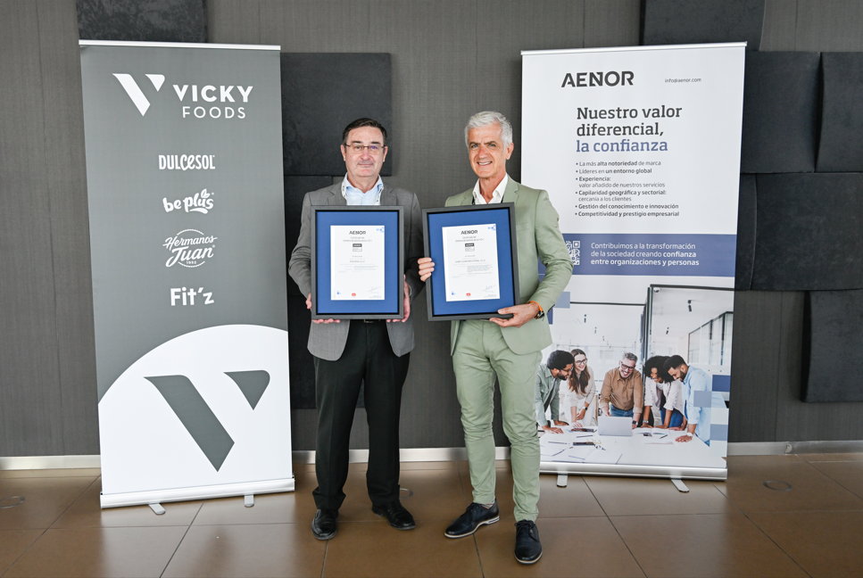 De izquierda a derecha: Salvador Ibáñez, director de AENOR en Baleares, Comunidad Valenciana y Murcia, y Rafael Juan, CEO de Vicky Foods