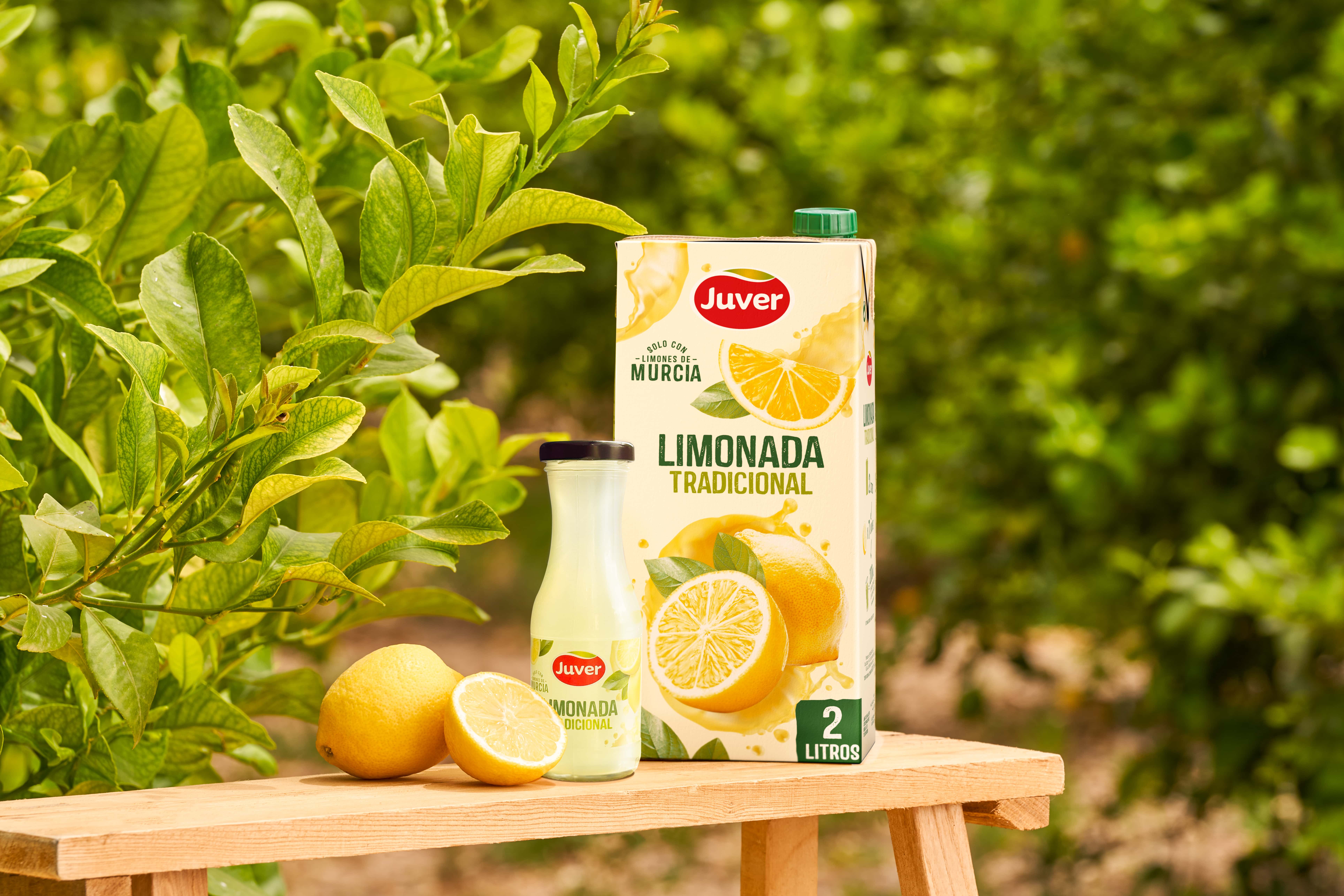 Zumos Juver, líder en la producción de zumos y néctares naturales en España desde hace más de seis décadas, anuncia el lanzamiento del nuevo etiquetado para su Limonada Tradicional. Este nuevo diseño resalta el compromiso de Juver con la excelencia y autenticidad, destacando que su limonada se elabora "solo con limones de Murcia".
