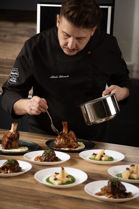 Alberto Salameh es un apasionado de la cocina, que disfruta “trabajando las técnicas de cocinado tradicionales y desarrollando las más vanguardistas”. En un compromiso con el aprendizaje continuo, el chef estudia “cada uno de los procesos que ocurren cuando cocino”, factores que contribuirán al desarrollo de soluciones adaptadas a las necesidades de los hosteleros y al contacto directo y cercano con los clientes.