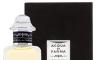 La caja va forrada de terciopelo negro, con lo que la etiqueta de metal destaca todavía más para pasar a desvelar el frasco, colocado sobre el fondo de raso, con unos juegos de luces dignos de la mejor escenografía.