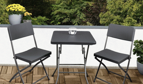 El set de mesa con dos sillas efecto ratán de ALDI es uno de los productos estrella de esta colección de productos de decoración para el exterior. Están hechas de plástico resistente y armazón de acero estable, lo que permite una mayor limpieza y permite su óptima conservación en espacios exteriores. Además, las tres piezas son plegables para un fácil transporte y almacenaje. Se podrá encontrar a partir de este sábado por 79,99 euros.