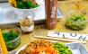 César Palace: con base de pasta tricolor y toppings de pollo, huevo cocido, aguacate, tomate cherry, dados de queso, zanahoria y pipas de calabaza + Salsa César