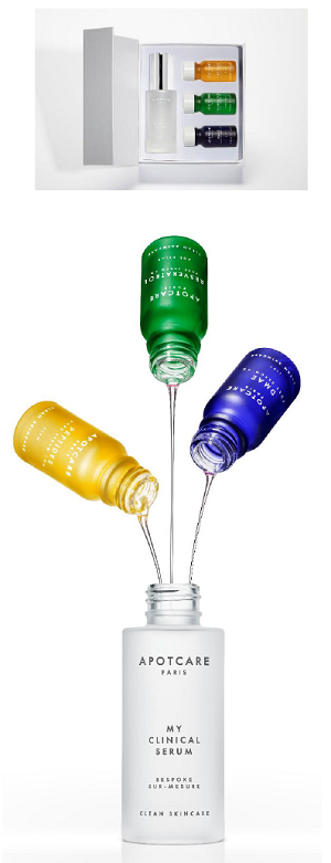 APOTCARE, la marca francesa experta en clean beauty, así como tratamientos clínicamente probados, efectivos, lujosos y respetuosos (cruelty free y con materiales 100 % reciclados) lanza MY CLINICAL SERUM: 4 sets compuestos por 3 de sus míticos Pure Serums que se mezclan al momento para conseguir un tratamiento a medida, fresco e increíblemente efectivo. Para mejorar su absorción, relajar los rasgos faciales, reafirmar y tensar la piel, APOTCARE ha concebido además un practiquísimo Beauty Roller que replica los masajes faciales profesionales. Cada set My Clinical Serum cuenta con 3 Pure Serum de 10 ml más un frasco de 30 ml para mezclarlos antes de la aplicación. En el HIDRATANTE/RELLENADOR encontrarás ácido hialurónico, colágeno y ceramidas, en el ILUMINADOR/ANTIMANCHAS vitamina C, niacinamida y regaliz, en el ANTIEDAD péptidos, DMAE y resveratrol y en el ANTI IMPERFECCIONES vitamina A, niacinamida y ácido hialurónico. Diseñados para actuar en sinergia, cada uno de estos potentísimos boosters también pueden ser utilizados por separado.