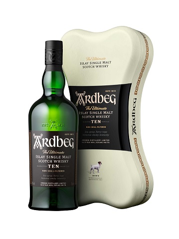 Ardbeg Ten Years Old es el whisky insignia de la destilería y un single malt, reconocido como el más ahumado y turbio de Islay, que la destilería se enorgullece de celebrar.