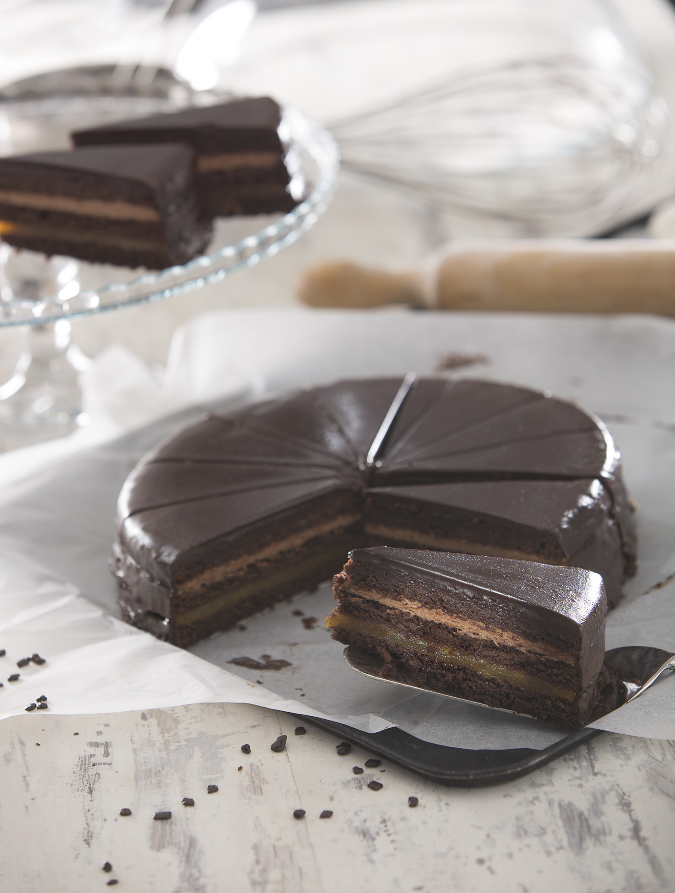 En pastelería apuesta por todo un clásico de la pastelería centroeuropea. Se trata de la Tarta Sacher, elaborada con dos capas de suculento bizcocho de chocolate y rellena de dos deliciosas combinaciones que sorprenderán al primer bocado. La versión de Berlys presenta una primera capa que contiene una exquisita mermelada de albaricoque enriquecida con trocitos de esta fruta que le aportan un toque ligeramente ácido. Mientras que en la segunda capa sorprende el goloso ganaché de chocolate con leche que provoca un delicioso contraste. El resultado es un placer para todos los sentidos que además se presenta cubierto con una fina capa de chocolate negro.
