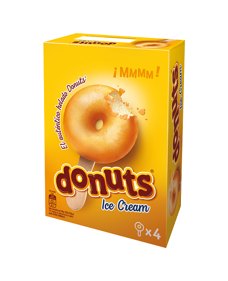 El nuevo helado de Donuts® estará disponible en dos formatos: tarrina de 500 ml de cremoso helado sabor Donuts® con sirope de Donuts® y stick de crema y cobertura sabor Donuts® con la forma de la emblemática rosquilla, redonda y con agujero, que sin duda hará las delicias de los auténticos fans de la marca. El formato tarrina ya se encuentra a la venta y el stick estará disponible a partir del mes de julio en multipack de 4 unidades para el canal in home y en formato individual para el canal impulso.
