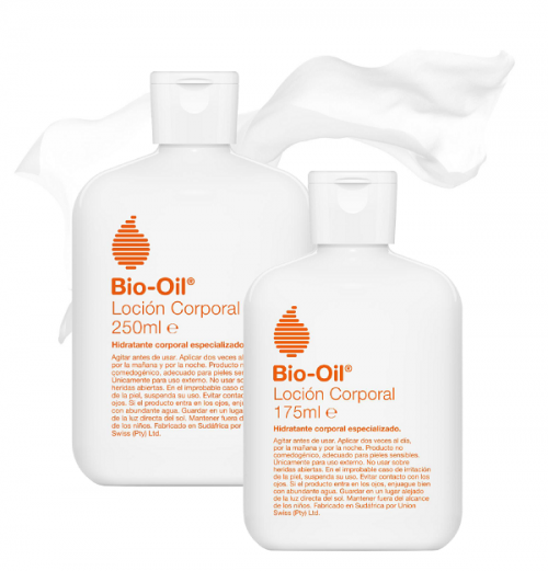 Bio‑Oil® Loción Corporal es una emulsión rica en aceite, con una consistencia fluida y fina, fácil de aplicar, no grasa y de absorción rápida.