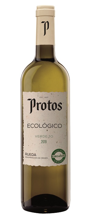 Por su parte, Protos Verdejo ecológico 2019 presenta las siguientes características organolépticas: color amarillo pajizo con matices verdosos característicos de la variedad. Limpio y brillante. En nariz, aroma de intensidad media-alta y algo más fresco que nuestro verdejo tradicional. Destacan los cítricos, junto a la manzana y los herbáceos típicos del Verdejo. En boca es un vino con buena acidez que le da frescura, seco, con la redondez y estructura que aporta la crianza de dos meses sobre lías finas. Fondo ligeramente amargo, persistente y con buena retronasal, en la que vuelven a salir la manzana y los herbáceos.