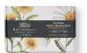 Esta pastilla de jabón limpia con total suavidad, aportando un efecto hidratante, calmante, antioxidante y reparador. Gracias a los extractos de caléndula, rica en flavonoides, carotenoídes y polisacáridos con poder anti-inflamatorio, cicatrizante y anti-microbiano, y a la manzanilla rica en flavonoides, cumarinas y aceites esenciales reparadores y antioxidantes, que se unen a la suavidad que aportan la manteca de karité y los aceites de coco, soja y oliva, este jabón limpia y sanea la piel de todo el cuerpo sin resecar.