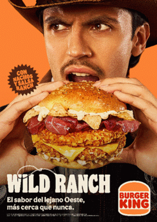 Bajo el concepto creativo “El sabor del lejano Oeste, más cerca que nunca”, Wild Ranch propone una experiencia gastronómica de alta intensidad. Su propuesta se construye a partir de una cuidada arquitectura de ingredientes pensada para los amantes de los sabores potentes: un distintivo pan de maíz, la cremosidad de la salsa Ranch, el crujiente del bacon ahumado, cebolla crispy y un elemento diferencial que aporta textura y personalidad: los nachos. Todo ello combinado con la icónica carne a la parrilla de Burger King® o la opción de pollo crujiente.