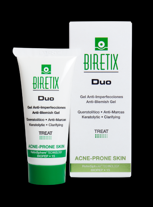 Biretix Duo cuenta con la eficacia demostrada de la tecnología RetinSphere®, que proporciona todos los beneficios de los retinoides sin resultar irritante ni fotosensibilizante, lo que permite su uso durante períodos prolongados de tiempo e incluso en época estival. Retinsphere®, además, fomenta el aumento de la formación de colágeno, de proteínas y acelera la renovación celular.