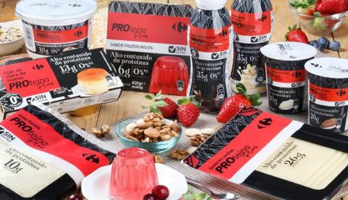 Carrefour lanza Proteína Plus, una nueva gama de marca propia que incluye diez referencias con un alto contenido de proteínas. Los artículos que comprenden esta gama son: gelatina de frutos rojos, queso fresco batido, rallado y en loncha sin materia grasa, flan de clara de huevo y bebidas lácteas de chocolate y de vainilla sin materia grasa y sin azúcares añadidos, bebida láctea al cacao y postres de vainilla y chocolate sin azúcares añadidos. Ninguno de estos productos contiene gluten.