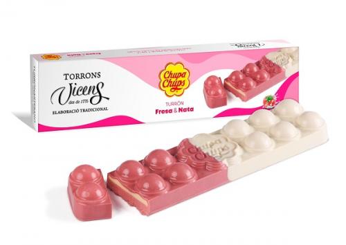 Con el nuevo turrón de Chupa Chups®, la firma agramuntina da un nuevo paso en el proceso de creatividad e innovación gastronómica, mezclando sabores que se convierten en un experiencia para el paladar. La nueva variedad contiene un praliné de almendra, nata y fresa con crujiente de Chupa Chups® y está recubierto con chocolate blanco.