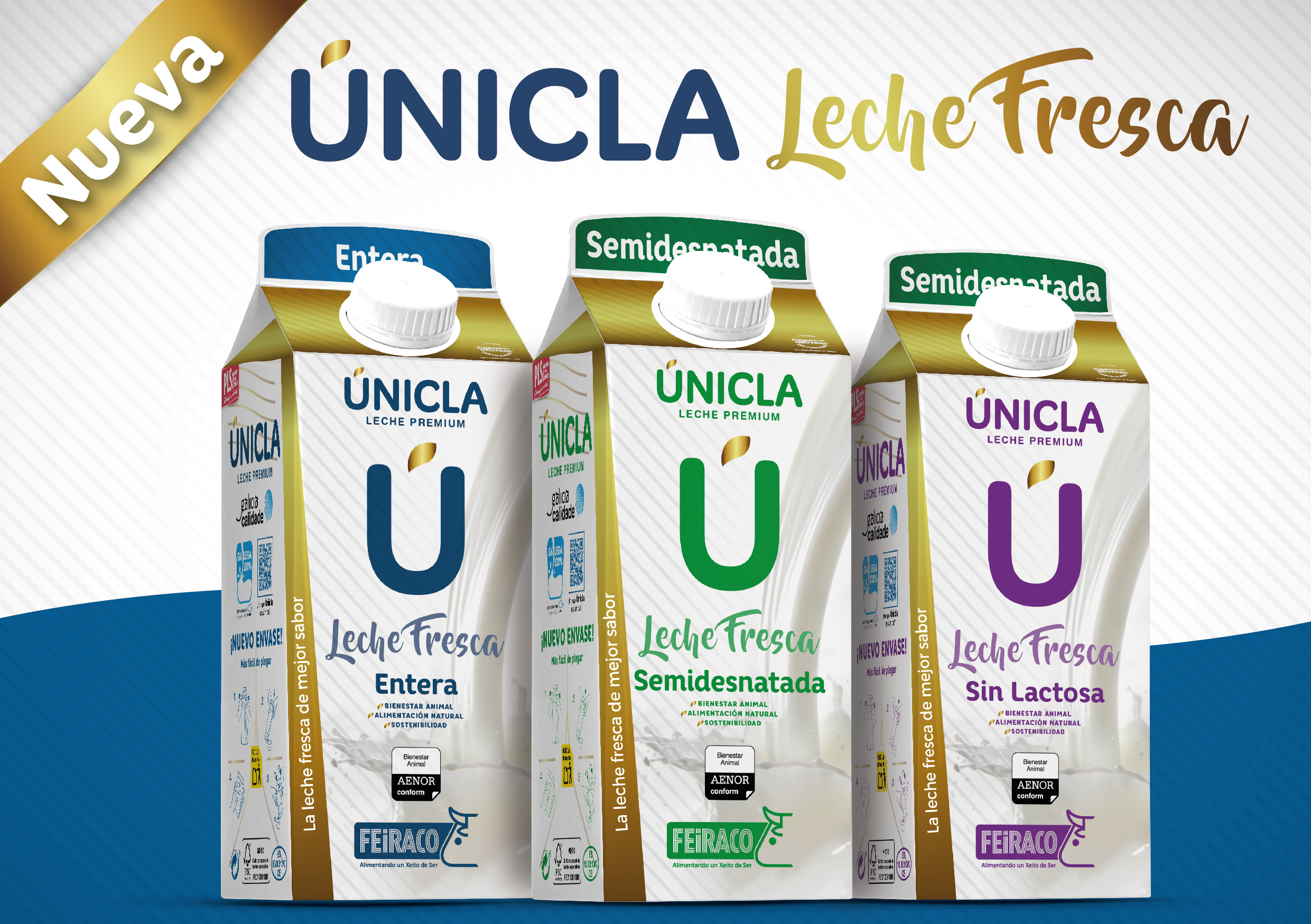 Leche Únicla es sinónimo de innovación, mejorando el perfil nutricional de la leche a partir de la alimentación de las vacas complementada con semillas de lino, obteniendo los beneficios de los pastos de primavera durante todo el año. De esta manera, se logra una leche de altísima calidad y sabor, perfil graso mejorado y presencia de forma natural de Omega 3, CLA y Selenio, con certificado Galega 100% y sello de Galicia Calidade.