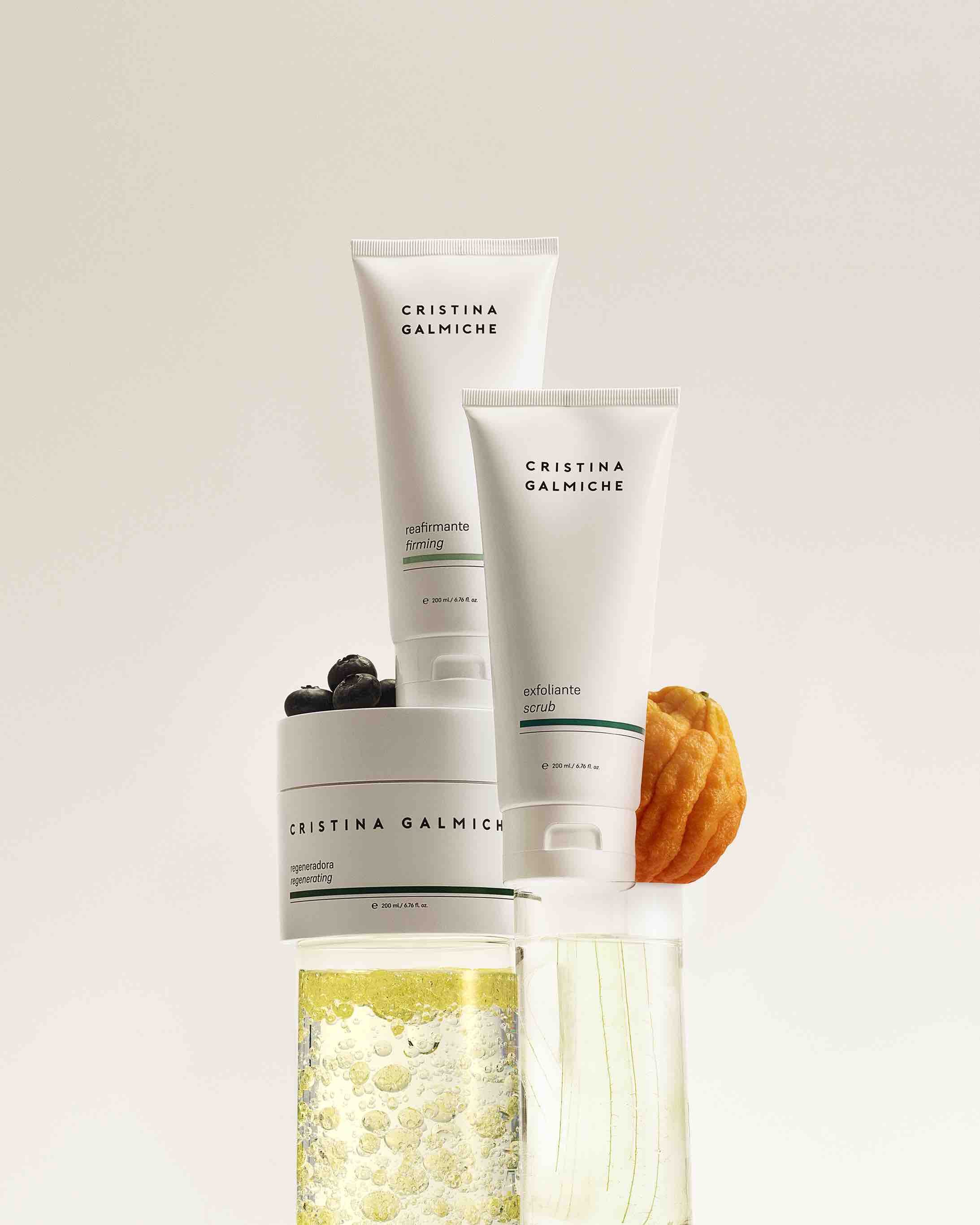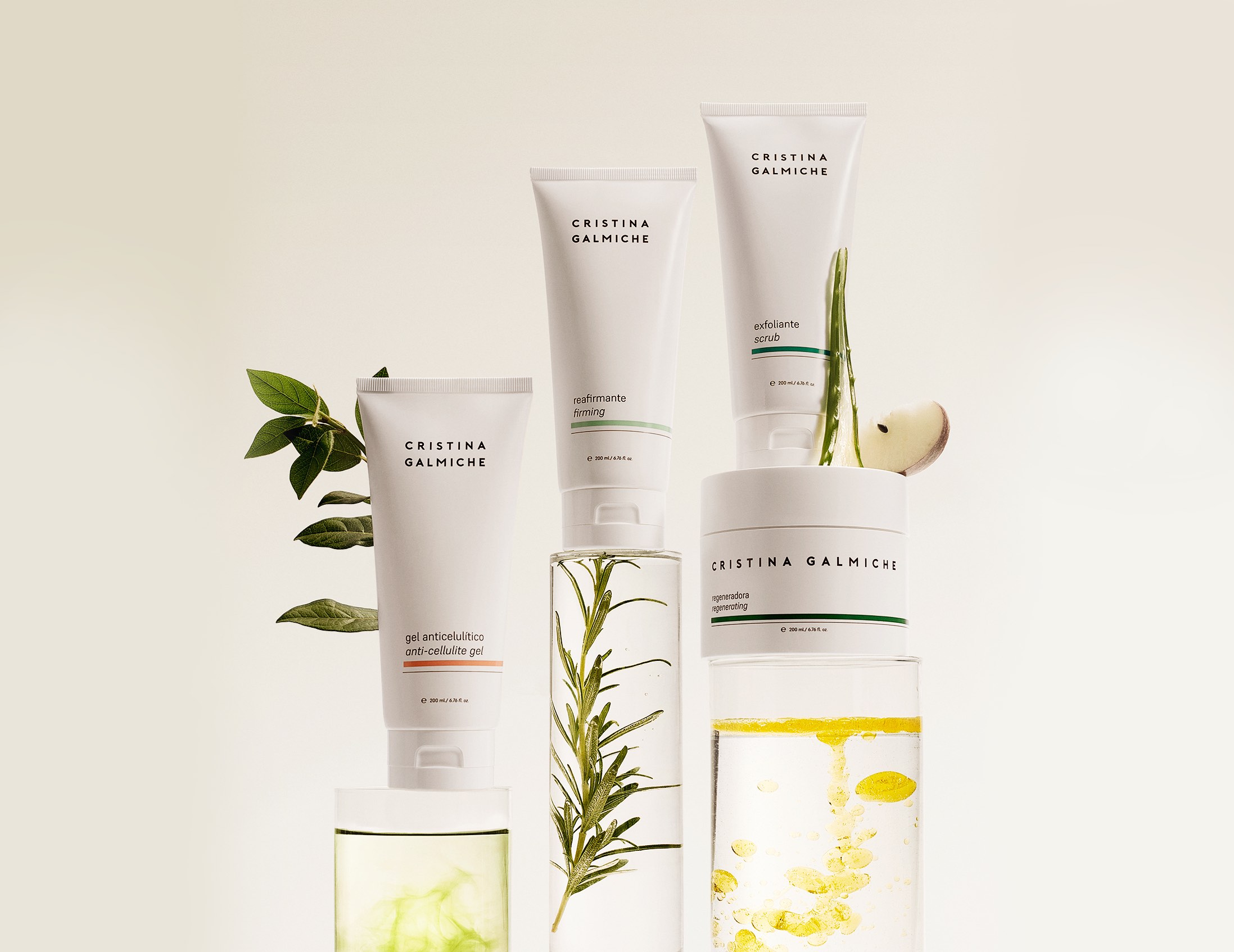 La nueva línea corporal Cristina Galmiche consta de 4 productos que combinan activos marinos y botánicos naturales de alta calidad: gel exfoliante, gel anticelulítico, crema reafirmante y regeneradora corporal. Todos han sido formulados con ingredientes activos respaldados por evidencia científica consolidada que avala sus cualidades para optimizar, reequilibrar y mejorar la piel de una forma respetuosa, visible y sostenible.