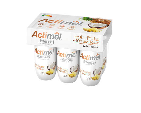 Actimel, con fermentos naturales (incluido su exclusivo L.Casei Danone), sigue manteniendo su compromiso de ayudar a las defensas gracias a sus vitaminas D y B6. La innovadora receta está disponible en dos sabores (plátano-fresa y piña-coco) y se puede adquirir en packs de 6 unidades a un PVP recomendado de 3,19 €*.