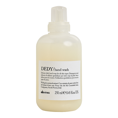 Un cuidado sencillo con una textura gel, cremosa y lujosa en su uso de agradable aroma verde, libre de sulfatos. DEDY no solo cuida de las manos, también del medio ambiente, prioridad de Davines, con su envase realizado con la mínima cantidad de plástico de uso alimentario y reutilizable, fabricado con las mínimas emisiones de dióxido de carbono con energía obtenida enteramente de fuentes renovables, y compensando las generadas con proyectos de reforestación en bosques de Madagascar.