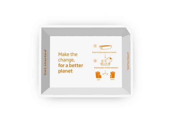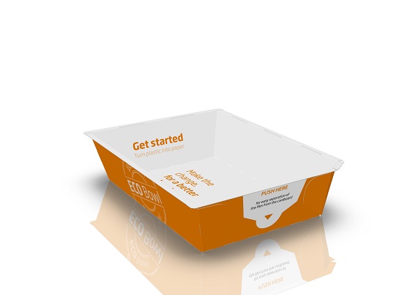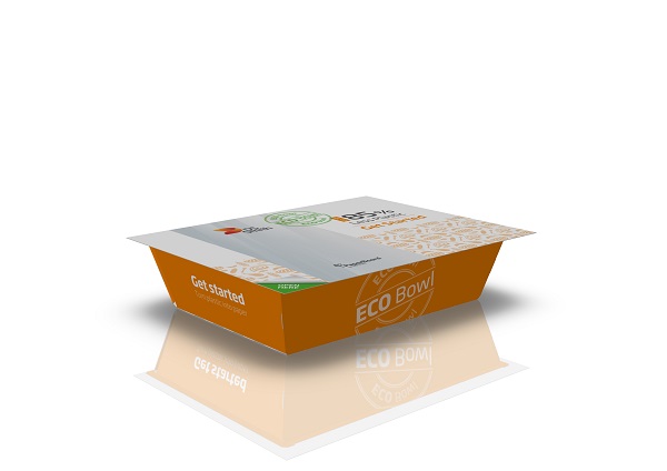 ECO Bowl es una bandeja 100 % reciclable fabricada en cartón ondulado cubierta con una fina lámina plástica y con una tapa de sellado en el mismo material, lo que supone un 85% menos de plástico frente a las bandejas convencionales.