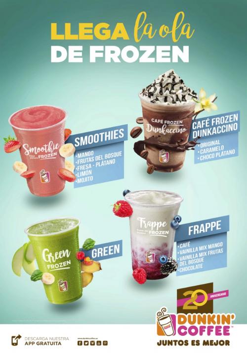 En total, nuevos granizados con una original mezcla de ingredientes que se suman a la categoria ‘Frozen’, gama de bebidas frías premium exclusivas de Dunkin’ Coffee.