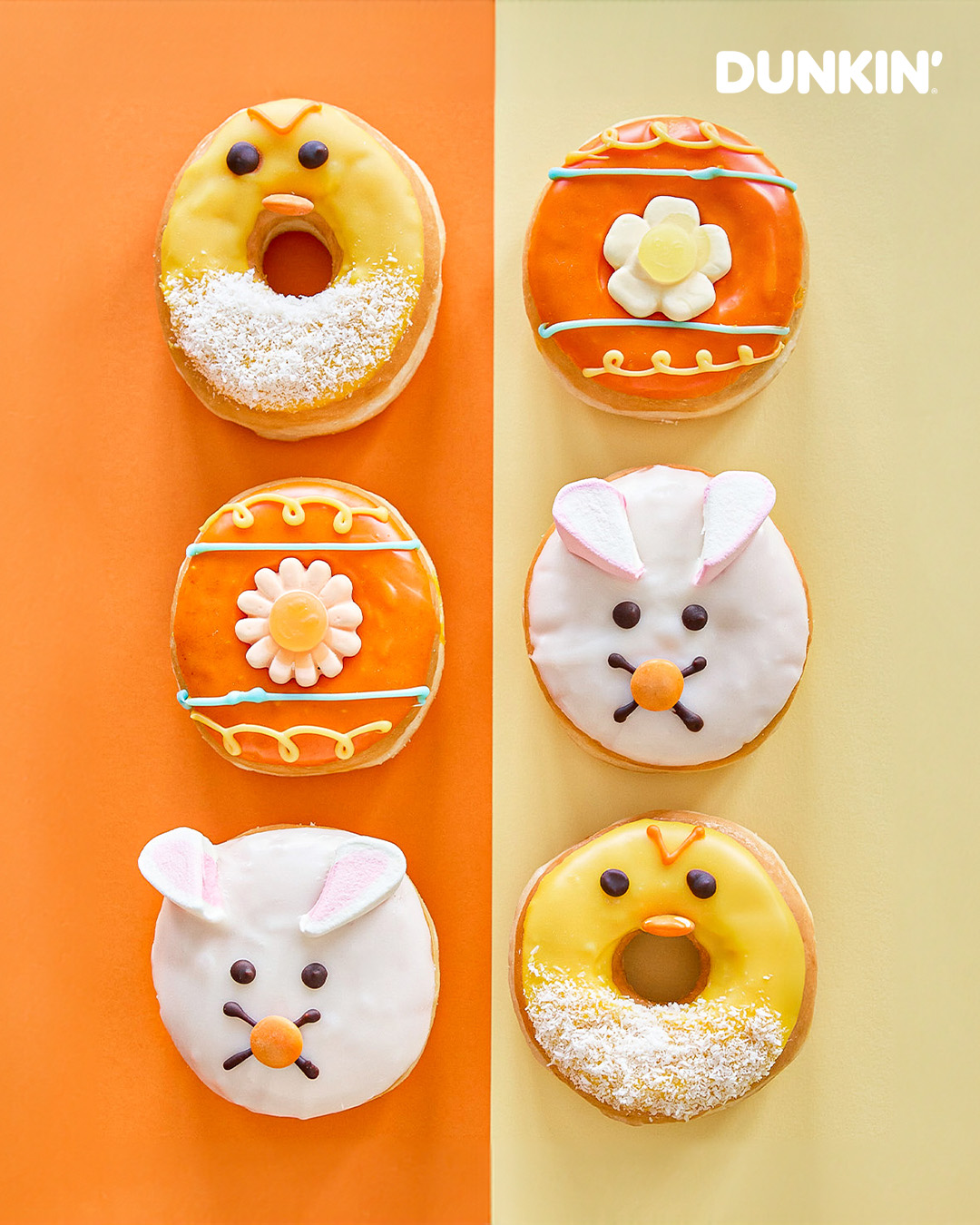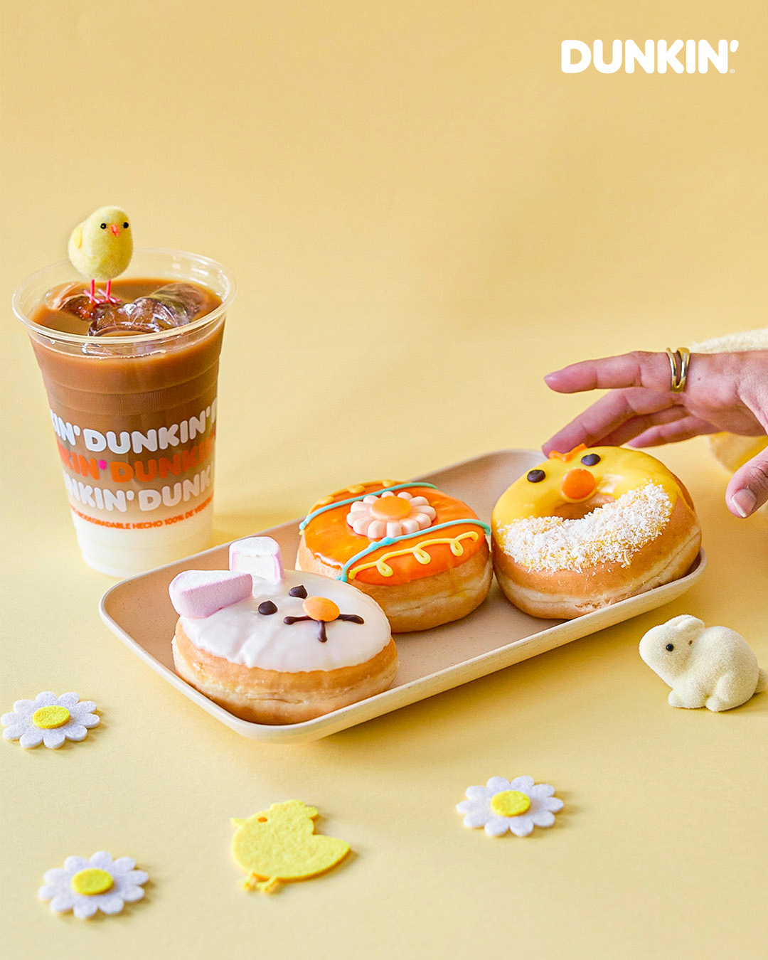 Bajo el claim “Se pasan de monos”, la compañía presenta “Dunkin’ Conejito”, un tierno homenaje al conejo de Pascua, relleno de suave crema pastelera, cubierto con icing de vainilla y decorado con Lacasitos y nubes; “Dunkin’ Flor”, un anillo bañado en icing de vainilla, coronado con una flor de gominola que le da un toque primaveral, y “Dunkin’ Pollito”, la monada más dulce de la temporada, con cobertura de icing de vainilla y un toque crujiente de Lacasitos y coco rallado.