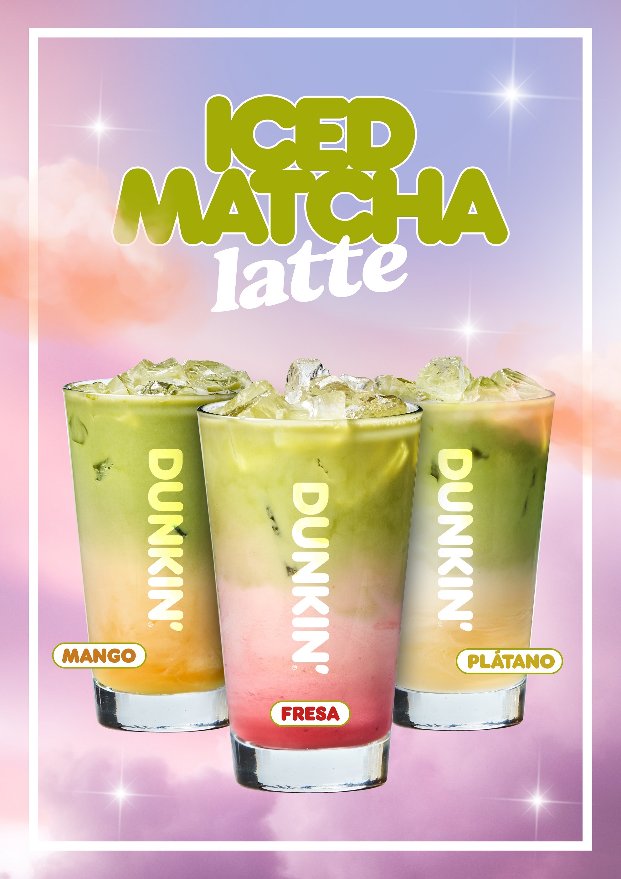 Los nuevos Iced Matcha Latte de Dunkin llegan en tres versiones (mango, fresa y plátano), elaboradas con base de matcha latte frío y servidas con leche o bebida vegetal de coco, avena o soja. Tres recetas tropicales y vibrantes, para ofrecer una experiencia única, llena de sabor y con una estética visualmente muy atractiva.
