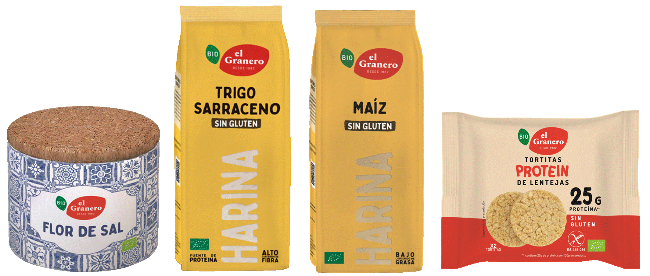 Cada producto refleja la esencia de El Granero Integral: ingredientes ecológicos cuidadosamente seleccionados, sin aditivos ni conservantes, y en envases respetuosos con el medio ambiente.
