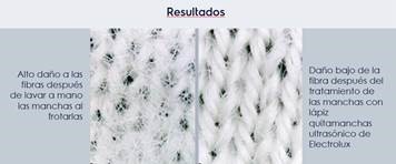El nivel de daño de la fibra de la prenda después de dos tratamientos diferentes de eliminación de manchas