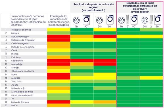 Electrolux lanza el Lápiz Quitamanchas Ultrasónico para eliminar hasta las manchas más difíciles, desde las más habituales como las de vino tinto, café, té, tinta azul, o las más difíciles como el maquillaje o la sangre. La combinación de agua y detergente junto con la tecnología de ultrasonidos y aplicándola antes del proceso de lavado, hace que la ropa sea tratada con eficacia y se limpien con mayor facilidad durante el ciclo de lavado y sin dañar los tejidos.