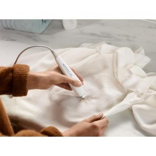 Según una encuesta realizada por Electrolux, la eliminación de manchas es la razón principal para lavar la ropa y la que más preocupa a los consumidores: el 75% de los encuestados afirman que pretratan su ropa en el caso de manchas difíciles, pero sólo el 26% está satisfecho con el resultado, a pesar del uso de una amplia variedad de productos de limpieza. Con el Lápiz Quitamanchas Ultrasónico, Electrolux ofrece ahora la solución ideal que elimina una gran variedad de manchas y causa mucho menos daño a la fibra que con un tratamiento convencional de lavado a mano o de uso de otros productos químicos. La innovadora tecnología de ultrasonidos envía vibraciones finas a través de las fibras actuando eficazmente sobre las partículas de suciedad, para que se eliminen más fácilmente al lavar.