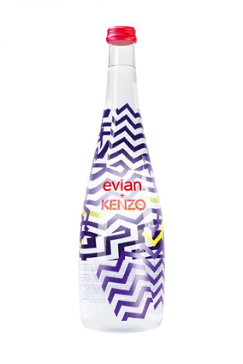 evian® y KENZO han colaborado para crear una botella que se inspira en el espíritu de juego. Carol Lim y Humberto Leon, directores creativos de Kenzo, han transmitido su particular visión colorista y vibrante al universo evian® con el diseño de una botella única. La colaboración de David Lynch con Kenzo en el último desfile de la firma, se hace también patente en el estampado que decora esta botella de edición limitada: un patrón quebrado que juega con la idea de desplazar y romper el orden de los elementos gráficos.