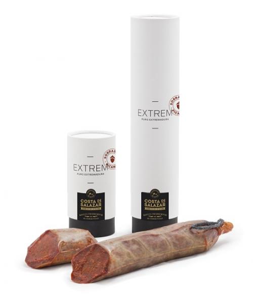 La sobrasada picante EXTREM Puro Extremadura & COSTA DE SALAZAR está elaborada con la receta tradicional de Formentera y con el mejor cerdo ibérico de bellota, esta sobrasa de autor -100% ibérica de bellota- ya está disponible en pieza entera o media pieza, y en dos tipos de tripa: tripa cular y de morcón (con un calibre superior, logrando una loncha más ancha). Una auténtica delicia para el paladar que no dejará indiferente al que tenga la suerte de probarla. Ahora que se acerca ya el buen tiempo, es un producto ideal para saborear al aire libre durante una excursión al campo; sin duda, la sobrasada picante EXTREM Puro Extremadura & COSTA DE SALAZAR será la reina del picnic.