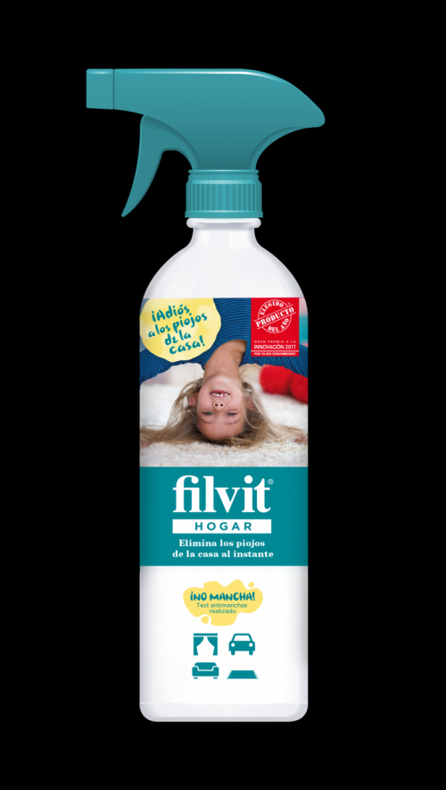 Porque existen agotadoras soluciones como aspirar toda la casa, alfombras, muebles y cojines incluidos; coger los peluches, gorros y cascos y encerrarlos en bolsas de plástico durante días, y pasar la aspiradora por el coche y sillita una y otra vez. Sin embargo, ahora es posible ahorrarse todo esto con el nuevo Filvit Hogar, el primer spray que con un solo gesto mata los piojos y liendres de todos los objetos al momento. Un producto único en el mercado que ofrece mayor comodidad y un gran ahorro de tiempo. Además, está testado por estrictos estudios de eficacia y controles de seguridad, y se ha demostrado que no deja ni una mancha. Con Filvit Hogar la puerta de tu casa se cierra para que ellos no vuelvan jamás.