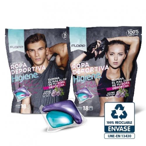 FLOPP ha desarrollado un detergente para lavar la ropa deportiva que es especialmente efectivo en las fibras técnicas sintéticas y que elimina los olores de sudor y las manchas.