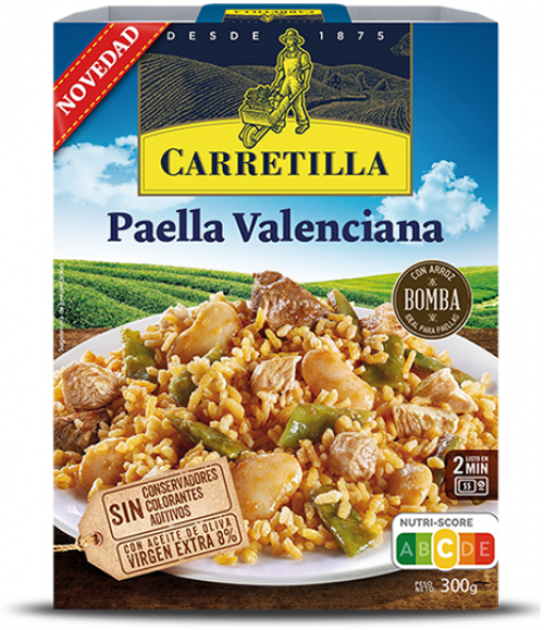 Carretilla, como especialista en platos de arroz, ofrece la gama más amplia del del mercado, sumando con este lanzamiento de Paella Valenciana hasta un total de 9 recetas distintas donde elegir, además de 3 variedades de vasitos de arroz como guarnición.
