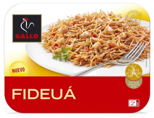 Pastas Gallo ha lanzado al mercado su propia receta de fideuá, que requiere tan sólo dos minutos de microondas para estar al punto. Con este novedoso producto, la firma quiere facilitar el consumo diario y presenta su fideuá en una cómoda bandeja, apta para microondas, que resulta ideal para una comida o cena, tanto dentro como fuera del hogar. Sus ingredientes son caldo de pescado, sepia, hortalizas y fideos Gallo y se presenta en formato de 275 gramos, a un precio la unidad de 2,99 euros en los lineales de distribución.