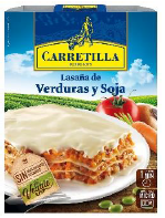 − Lasaña de Verduras y Soja: plato apetitoso y saciante de pasta con verduras que gustará a toda la familia. Está elaborada con soja, uno de los 10 productos preferidos como sustitutos de la carne por su aporte proteico (PVP objetivo: 2,69€).