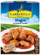 − Magro en Salsa de Tomate: recetas típicas de la gastronomía española para los amantes de los platos con salsa. Un tradicional guiso de carne, acompañado de Salsa de Tomate Carretilla que, por su sabor suave y presentar la carne troceada, es también perfecto para toda la familia. (PVP objetivo: 3,25 €).